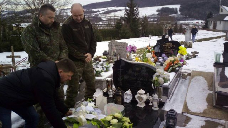 Pamiatku na zosnulého kolegu, poručíka Dušana Paľucha, si v ten istý deň minútou ticha, modlitbou a položením venca pripomenuli aj prešovskí letci v jeho rodnej obci Kojatice.