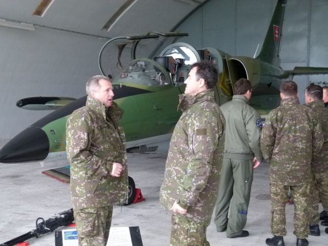 Po privítaní hostí na pôde Zmiešaného krídla generálmajora Otta Smika a spoločnom fotografovaní pri pamätníku leteckej techniky sa návšteva oboznámila s úlohami pohotovostného systému v priestoroch ostrej hotovosti.