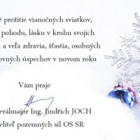 Prajem Vám všetkým požehnané a príjemné prežitie vianočných sviatkov v kruhu najbližších, nech Vás Vianoce naplnia pokojom, radosťou a láskou. V novom roku Vám želám dostatok zdravia, šťastia, lásky, životného optimizmu, tolerancie, vzájomného porozumenia a úspechov v osobnom i pracovnom živote.
