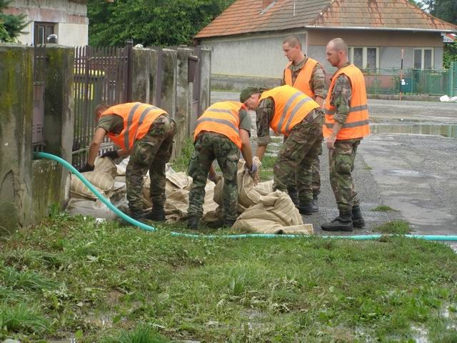 v piatok popoludní sa 20 príslušníkov 13. mechanizovaného práporu presunulo do spomínanej obce, kde pomáhali miestnemu obyvateľstvu plniť vrecia pieskom a tak zabrániť možnej prívalovej vlne ohroziť životy ľudí a ich majetok. V tomto povodňovom roku je to už po tretí krát, čo príslušníci 13. mechanizovaného práporu poskytli pomoc vodou ohrozeným obciam.