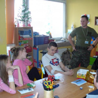 Skupina profesionálnych vojakov sa v stredu 12. decembra opäť stretla s deťmi a pedagogickým personálom základnej školy, ktorá sídli v tejto nemocnici. A ani tentokrát neprišli vojaci naprázdno. Na základe dobrovoľnej finančnej zbierky zakúpili pomôcky, z ktorých si deti s pomocou milých pani učiteliek vytvárajú kreatívne výrobky, a tak aspoň na chvíľu odvedú svoje myšlienky od nemocničného prostredia.