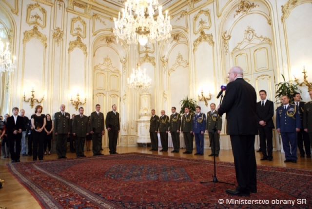 Siedmich vojakov Ozbrojených síl SR dnes vyznamenal prezident a hlavný veliteľ Ozbrojených síl SR Ivan Gašparovič. Na slávnostnom oceňovaní sa zúčastnil aj minister obrany Martin Glváč a náčelník Generálneho štábu Ozbrojených síl SR generálporučík Peter Vojtek.