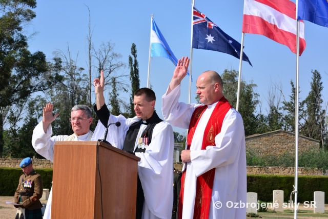 Veliteľ Sektoru 4 operácie UNFICYP podplukovník Miroslav Belanský spolu s ostatnými vojenskými predstaviteľmi položil počas spomienkového aktu veniec s červenými makmi.