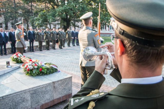 V predstihu sme si dnes v priestoroch Kutuzovových kasární pripomenuli Deň Ozbrojených síl SR. Na úvod slávnostného zhromaždenia čelní predstavitelia rezortu položili vence a zapálili sviečky pri pamätníku zmierenia, ktorý v sebe uchováva prste hliny z bojísk, na ktorých položili životy slovenskí vojaci, ako aj v sieni cti a slávy kde sme si pripomenuli padlých v operáciách medzinárodného krízového manažmentu.